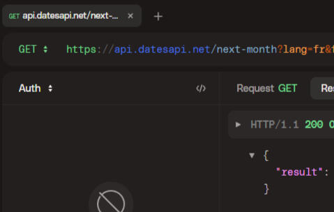 GET today's date or the next month's name. In your local language. In a format you specify. For free. Integrate it with your Zapier or Make scenario without having to deal with their obscure date modules.